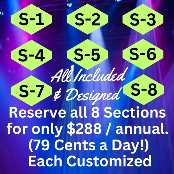 Our current promotional offer allows you to order your “Display Advertising space” equivalent to only 50 cents a day for a two-year term! All sample AD designs are numbered for AD selection purposes. It is not required that you be in the same industry as shown in the sample Ads. If you would like to advertise in a different section of the site, we will edit the site to accommodate your choice positioning, however, your AD placement must be selected below the “SPORTS NEWS” image. Any space above that is reserved for the Lead Support Advertiser.